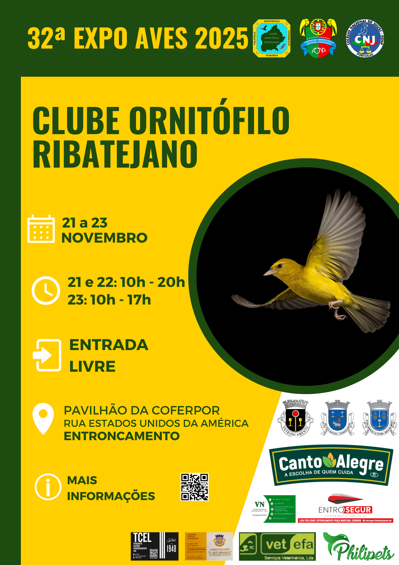 Saiba mais sobre o C.O.R.O Clube Ornitófilo Ribatejano irá realizar de 21 a 23 Novembro a sua 32ª Expo-Aves, no Pavilhão da Coferpor - Rua dos Estados Unidos da América 23, no Entroncamento.